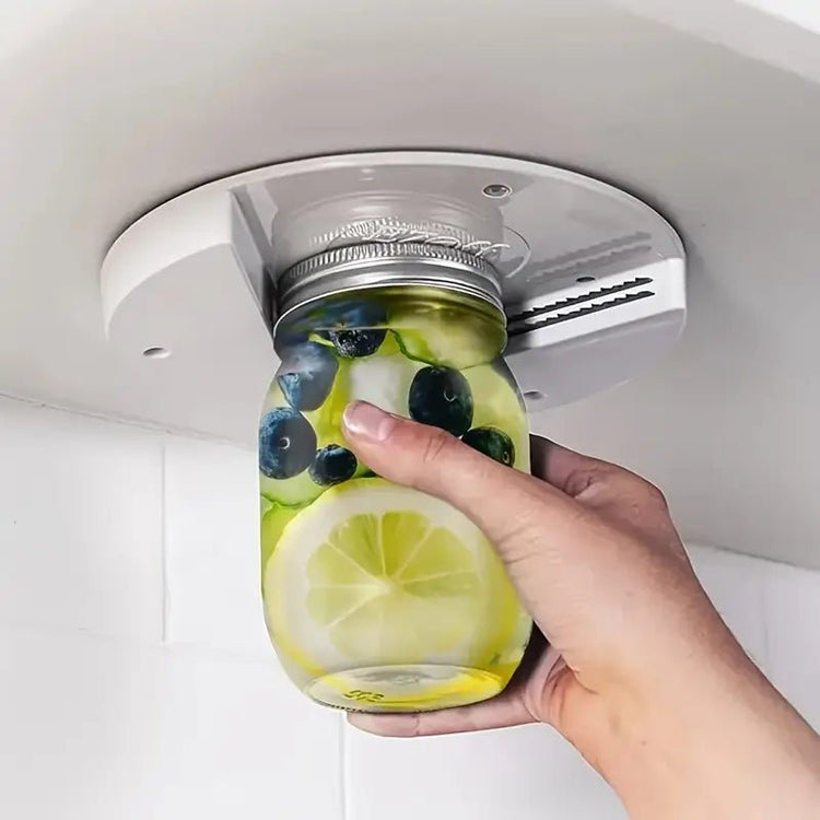 Fixé sous votre placard, cet ouvre bocaux malin vous permet d'ouvrir tous types de couvercles d'une seule main. Plus besoin de forcer ou de vous énerver, un simple geste suffit !